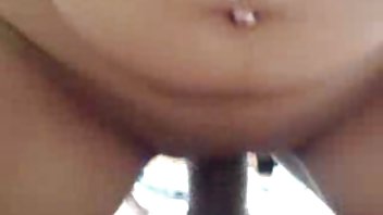 एक सुंदर श्यामला एक काला मुर्गा की सजा हो रही है